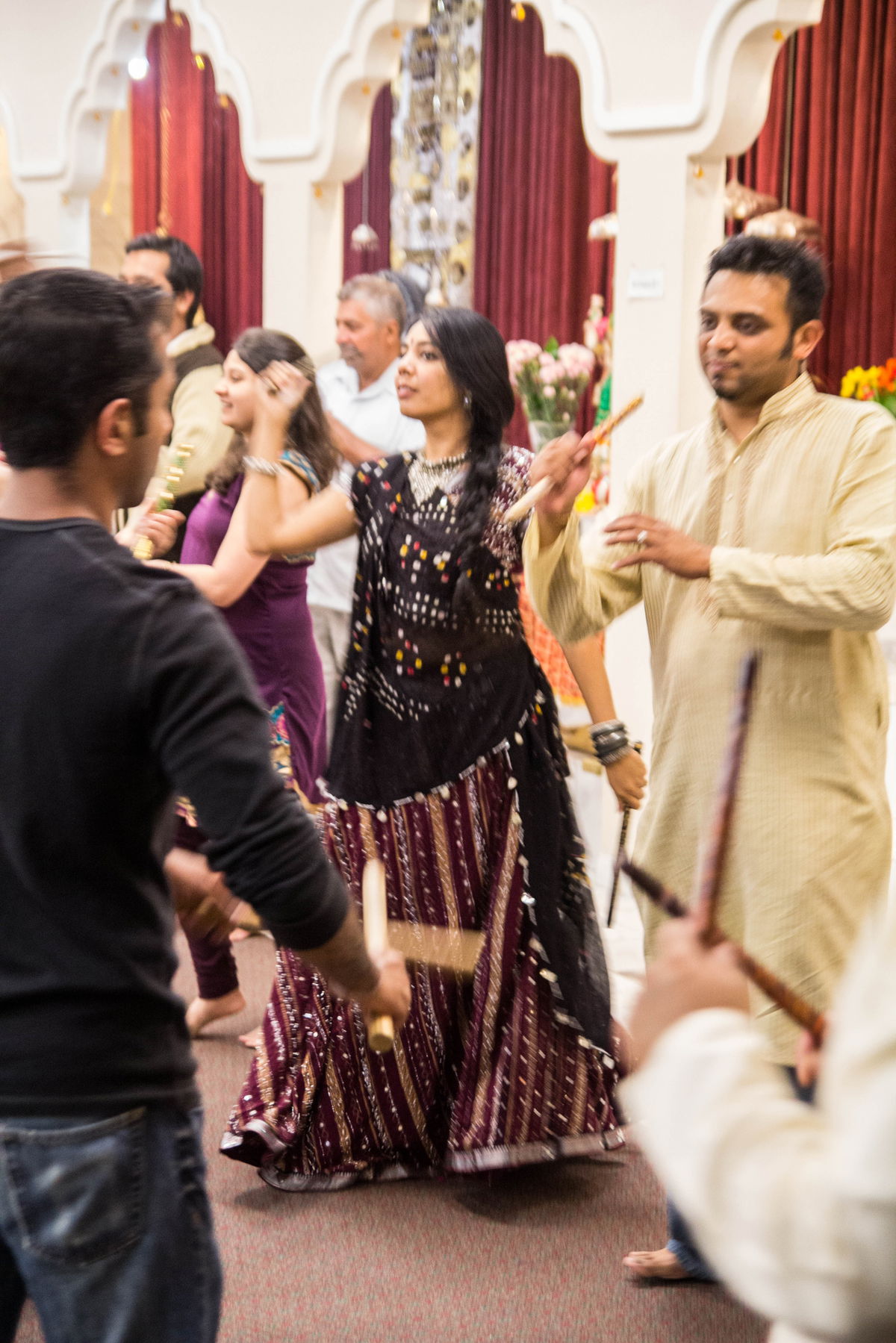 The Convention Center nights are huge, about 1500 to 2000 people show up. They usually involve a professional band and super loud speakers. I really enjoy dancing at the temple because it’s low key and the band is fabulous despite being made up of non-professionals. They usually have two live singers (a male and female), a dhol player and a keyboard player. And they are really good at building tempo.