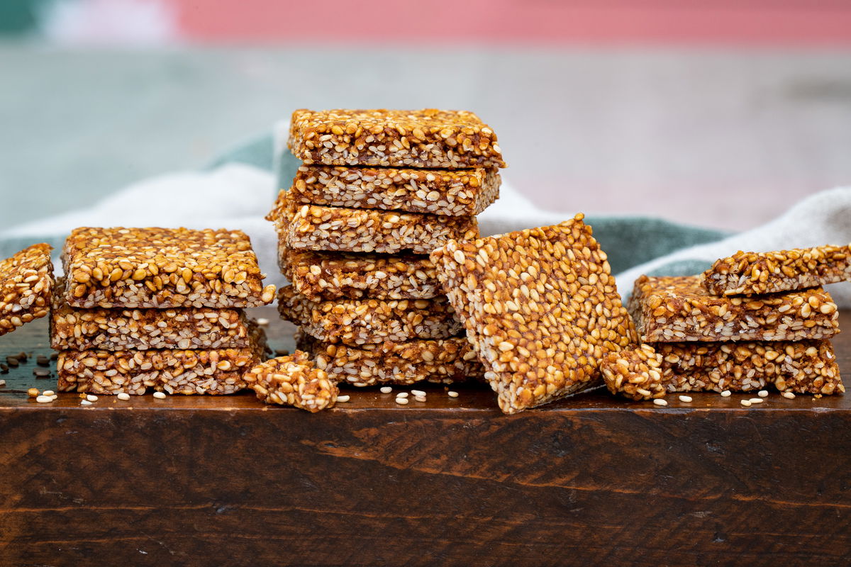 Sesame Chikki has different names all across India, like gajak, til chikki, tilgul, til gur patti, maroondam, and til gud.